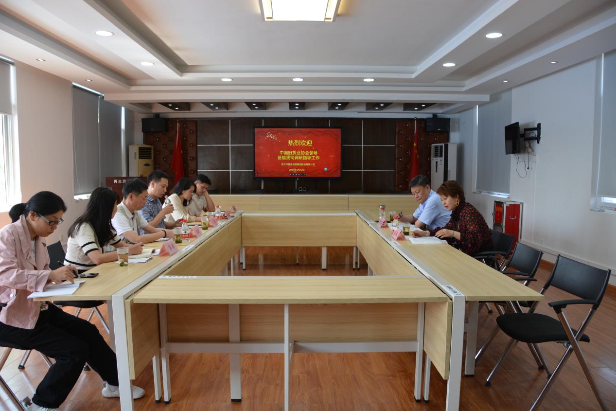 参观结束后,双方进行了座谈交流。再生资源集团公司董事长丁方煜对集团公司情况进行了介绍,金凯市场负责人对武汉市旧货市场整体情况及目前存在的主要问题进行了详细介绍。双方就如何进一步推动二手商品流通和再生资源行业循环发展路径进行了深入交流。