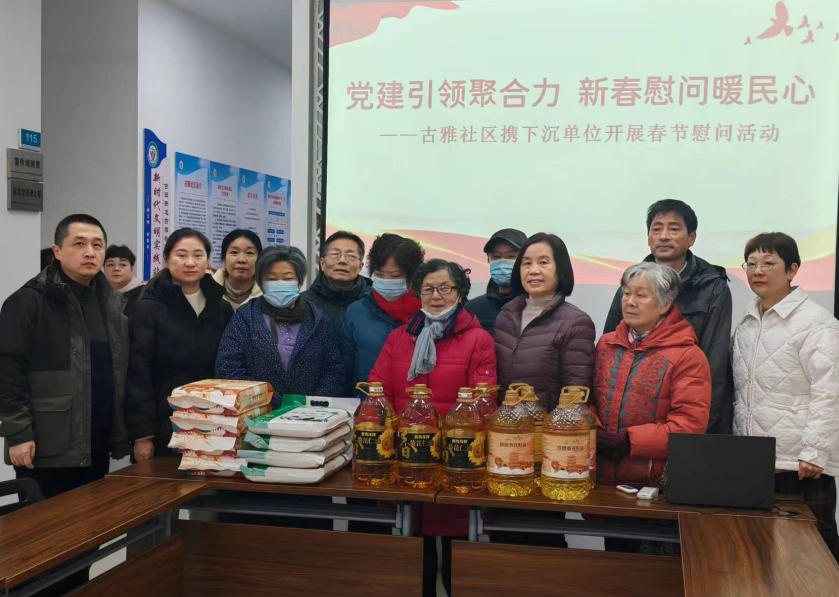 正值新春佳节来临之际,为了让共建社区困难党员群众过上一个欢乐祥和的春节,1月30日上午,武汉市再生资源集团党委委派党员干部代表来到共建社区——古雅社区开展慰问活动,为辖区困难党员群众、独居老人、残疾人等送去帮扶物资以及新春问候与美好的祝福。